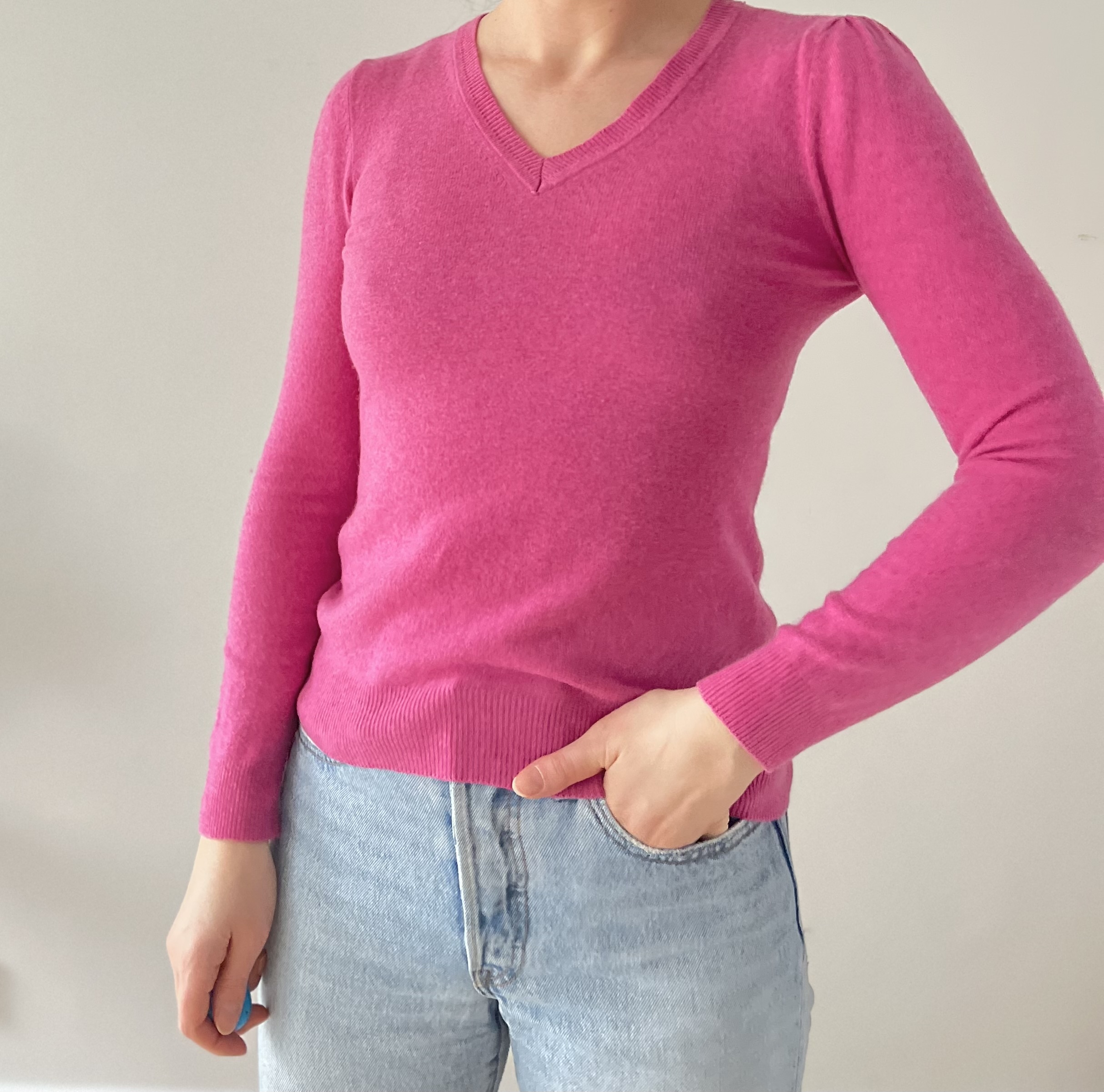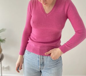 Różowy sweterek z delikatnymi bufkami 100% kaszmir.
