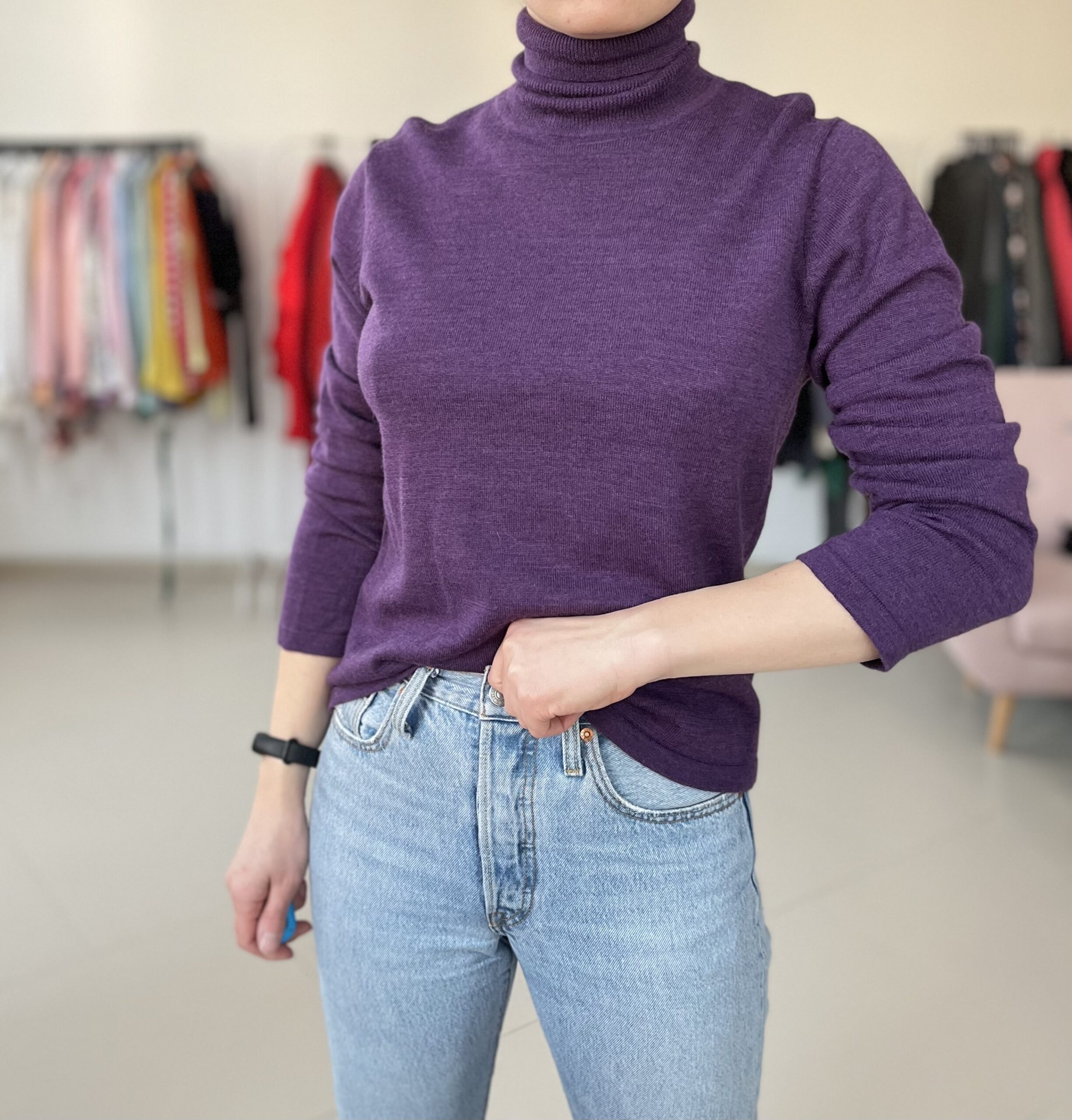 Sliwkowy golf 100% merino, certyfikat Woolmark.