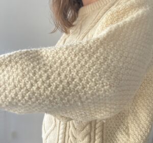 Gruby kremowy sweter warkocze 100% wełna