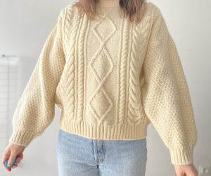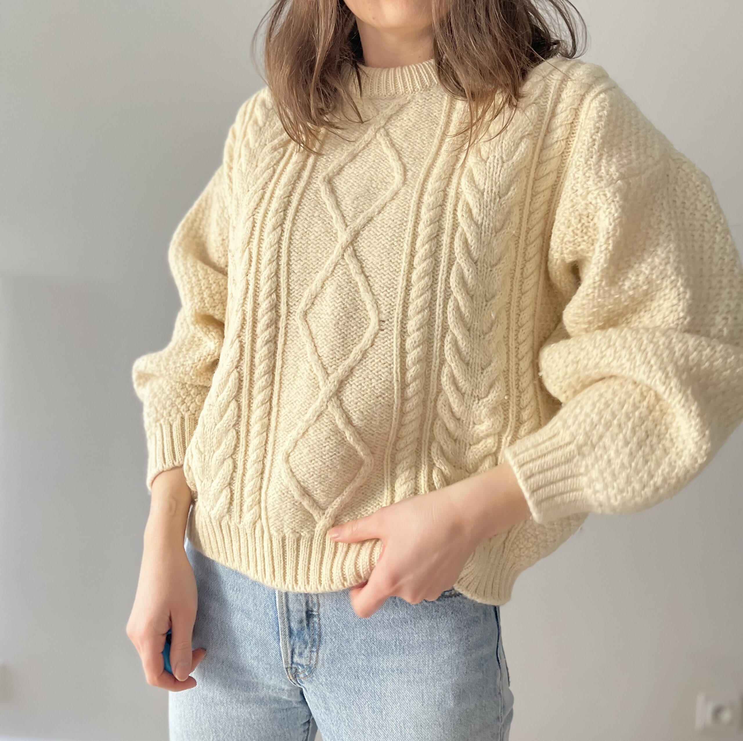 Gruby kremowy sweter warkocze 100% wełna