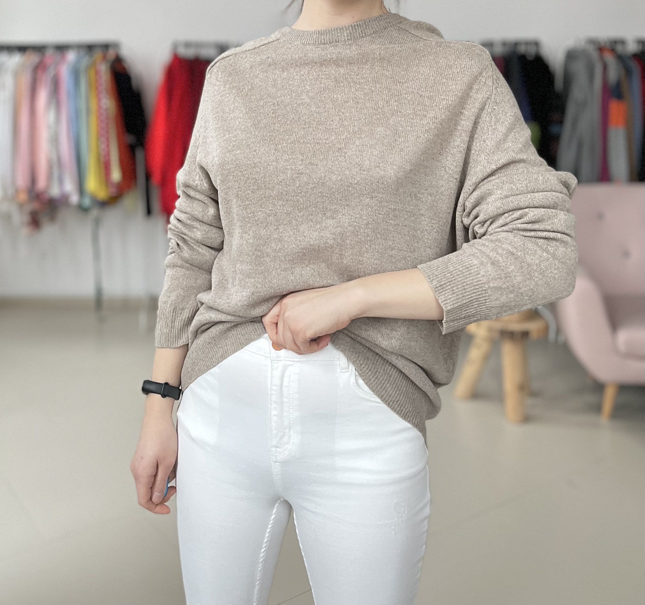 Bezowy sweterek 100% welny, Woolmark.