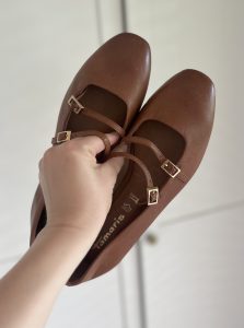 Skórzane brązowe balerinki Tamaris, mięciutkie
