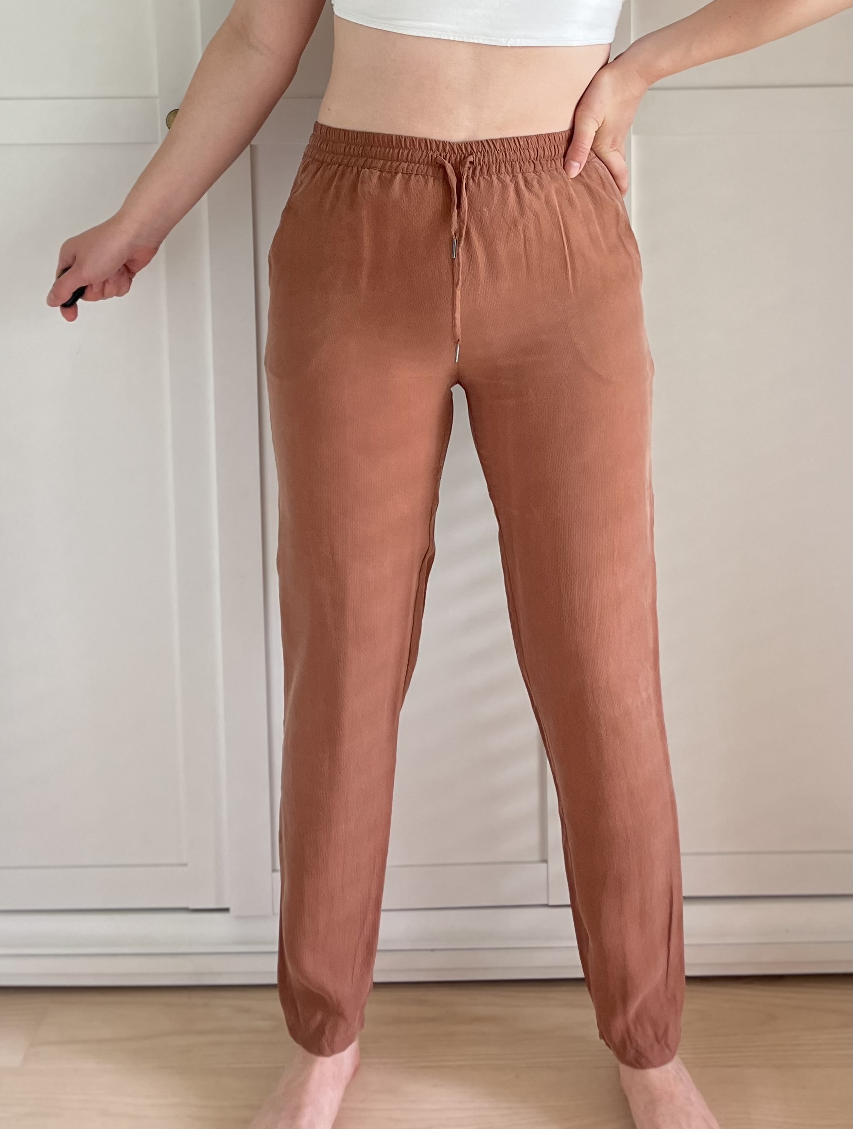 Beżowe spodnie len/jedwab XS/S
