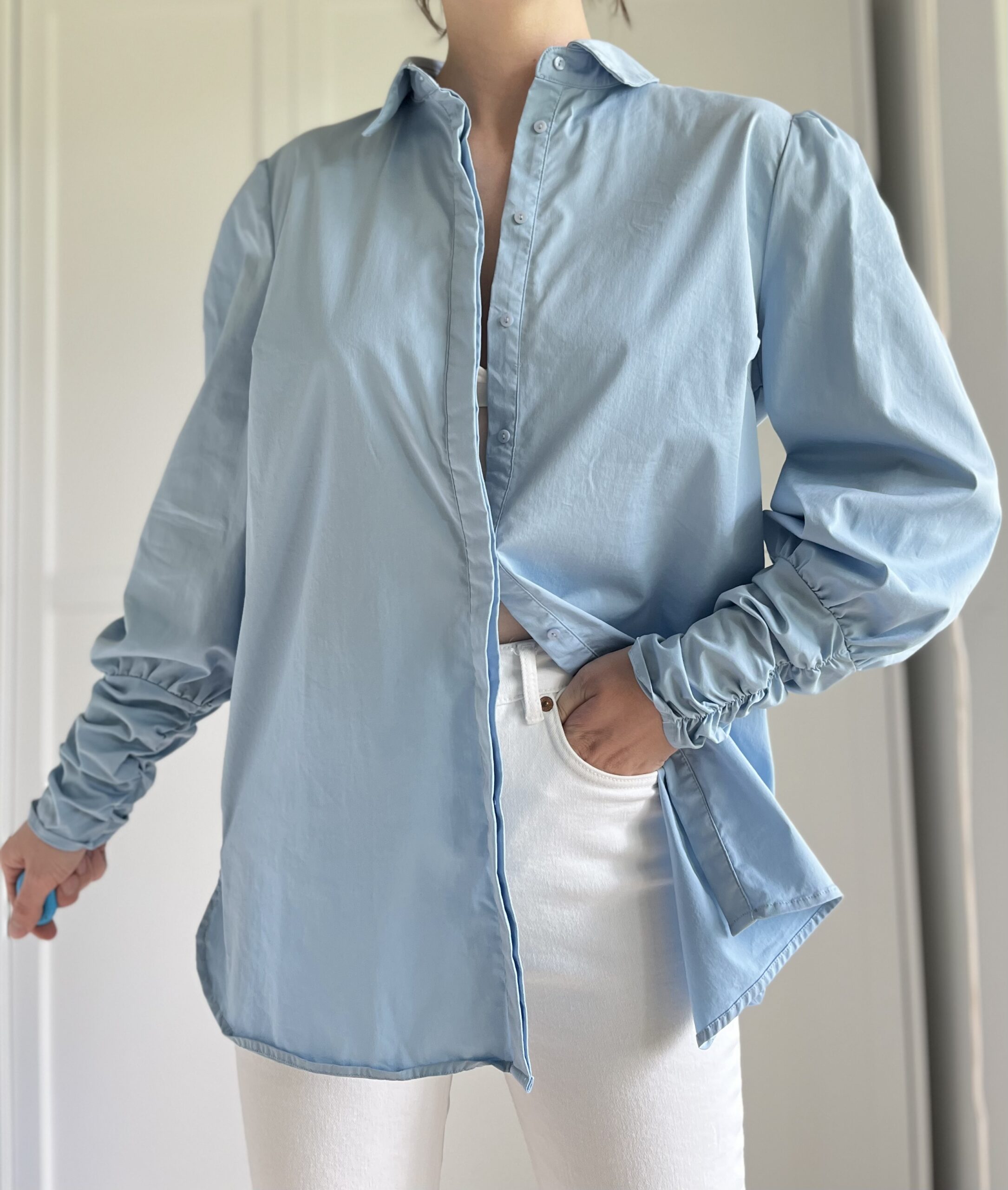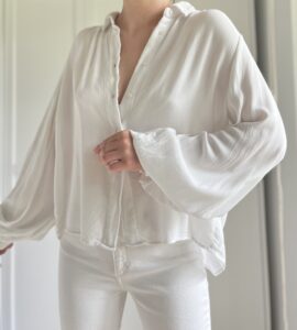 Biała koszula z bufiastymi rękawami skandynawskiej marki Carin Wester 100% wiskoza