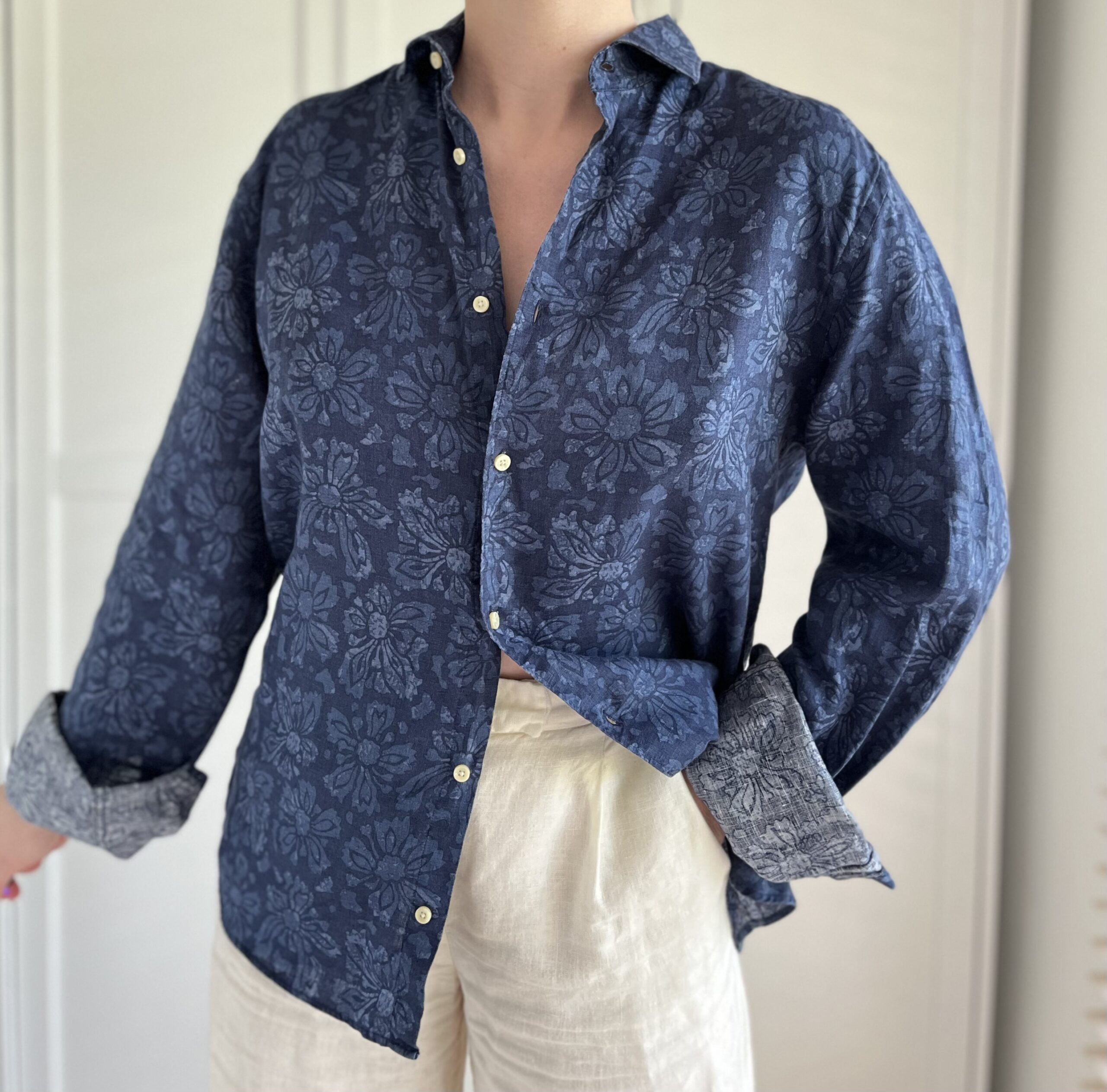 Błękitna koszula jedwab/wiskoza XL