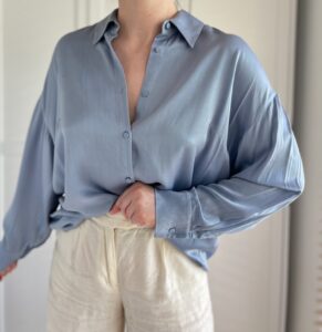 Błękitna koszula 47% jedwab 44% wiskoza 9% elastan