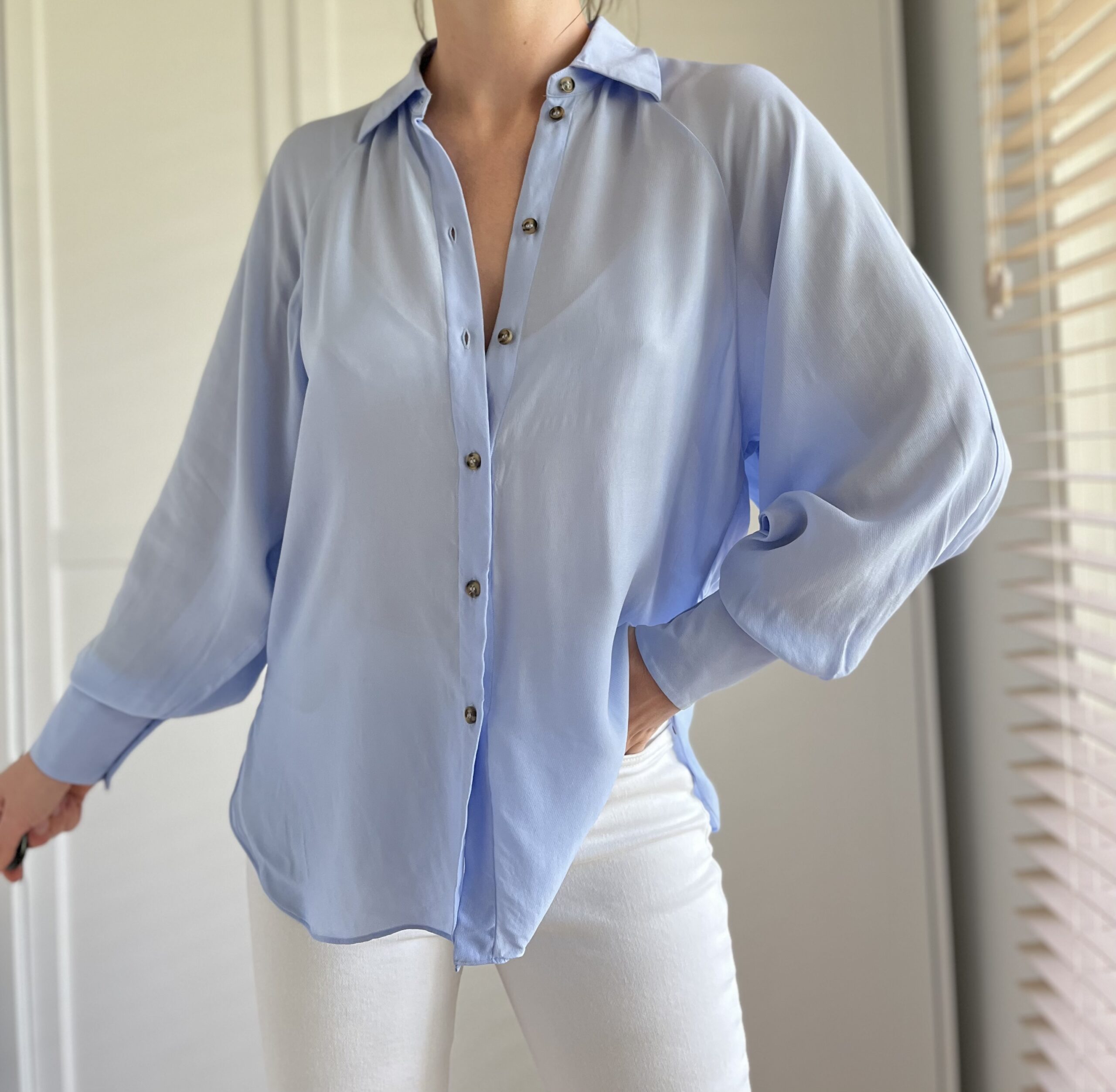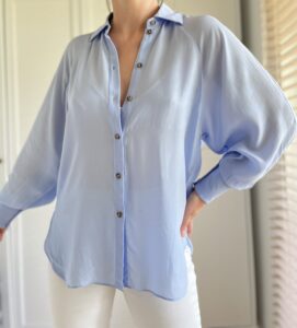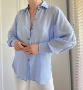 Błękitna koszula z bufiastymi rękawami Massimo Dutti 100% wiskoza