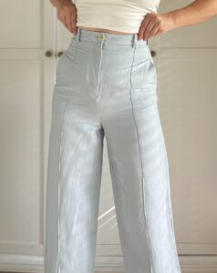 Błękitne spodnie 42% jedwab 58% len