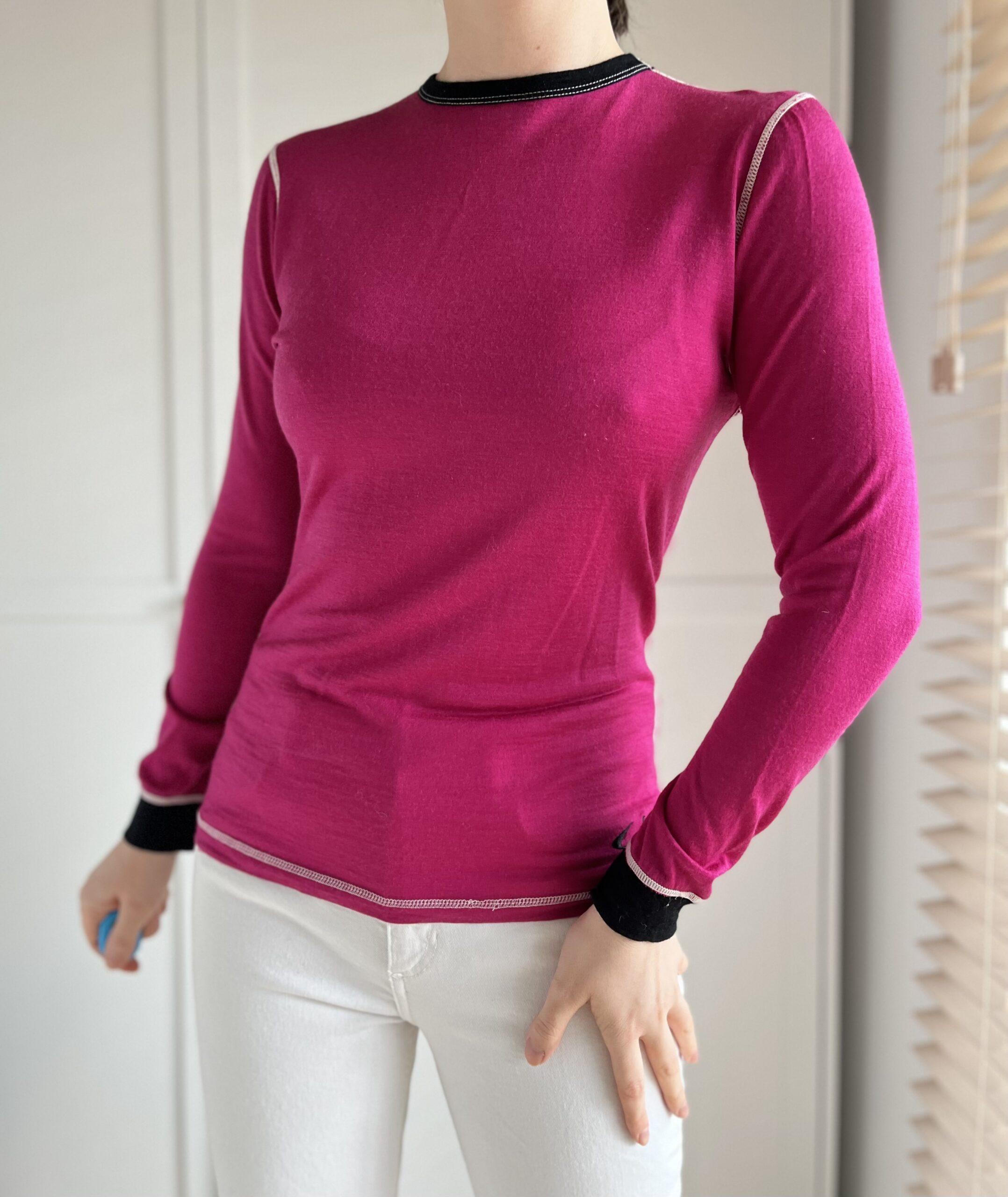 1 warstwa 80% merino 20% poliamid, druga warstwa 100% poliester
