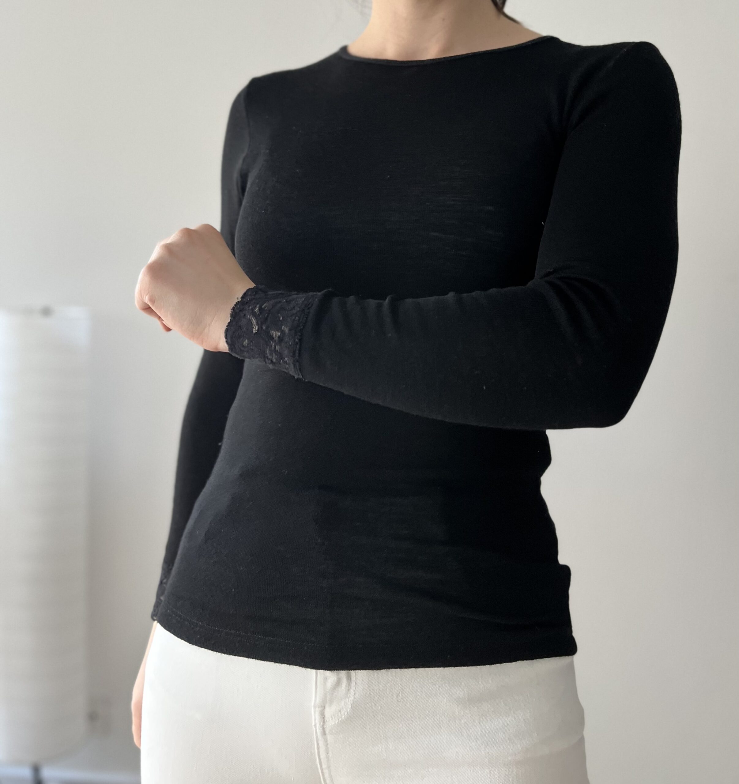 Bluzka 100% merino, rekawy wykonczone koronka.