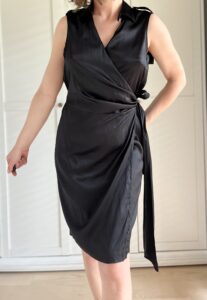 Czarna sukienka skandynawskiej marki Sand 93% jedwab 7% elastan