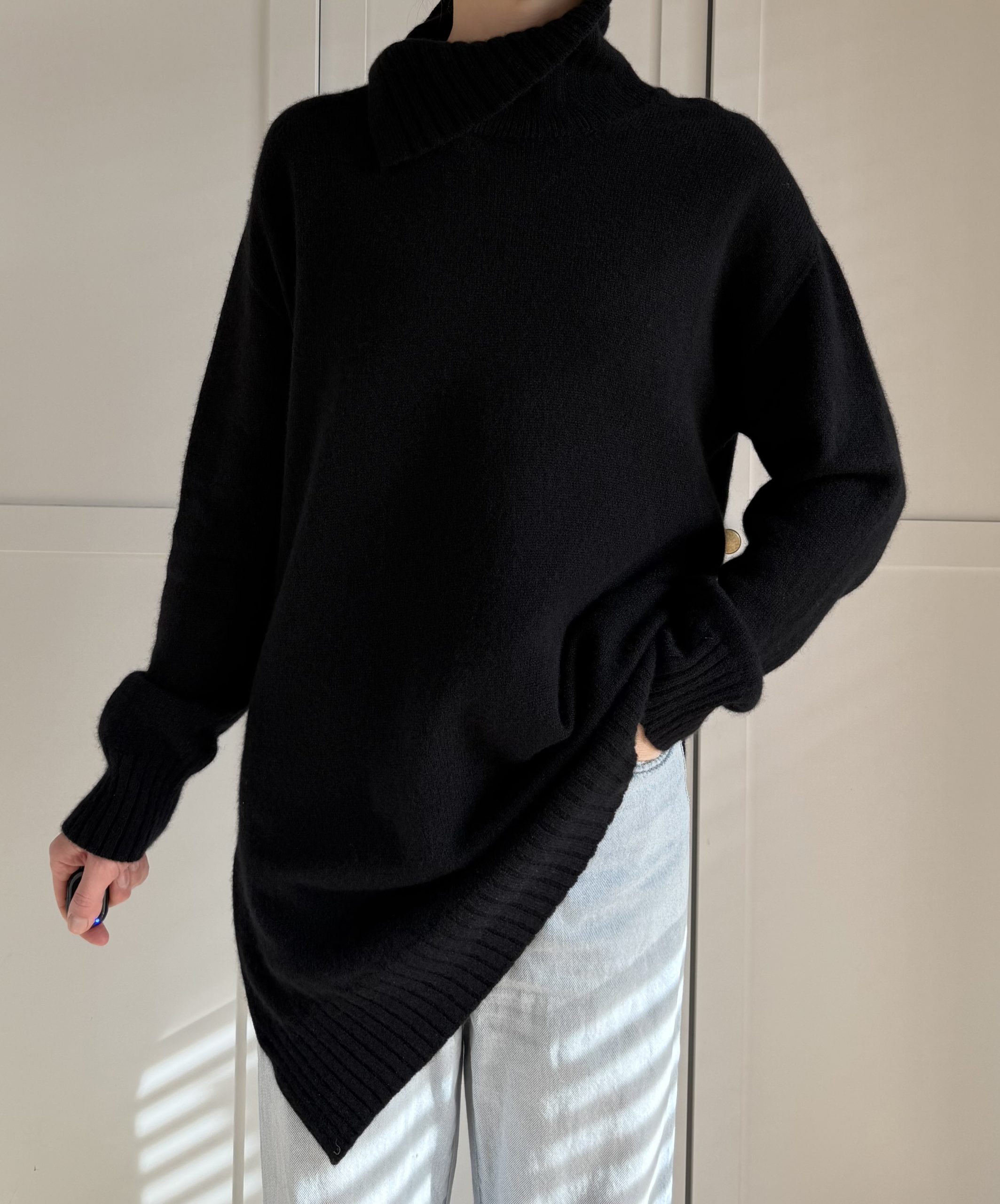 Czarny puszysty kardigan 100% kaszmir S/M