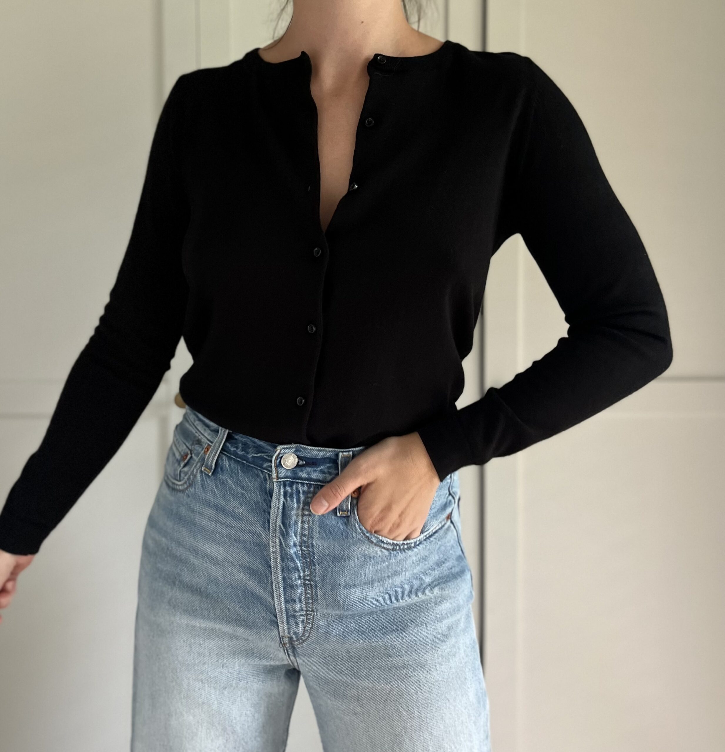 Czarny cienki sweterek 90% merino 10% jedwab