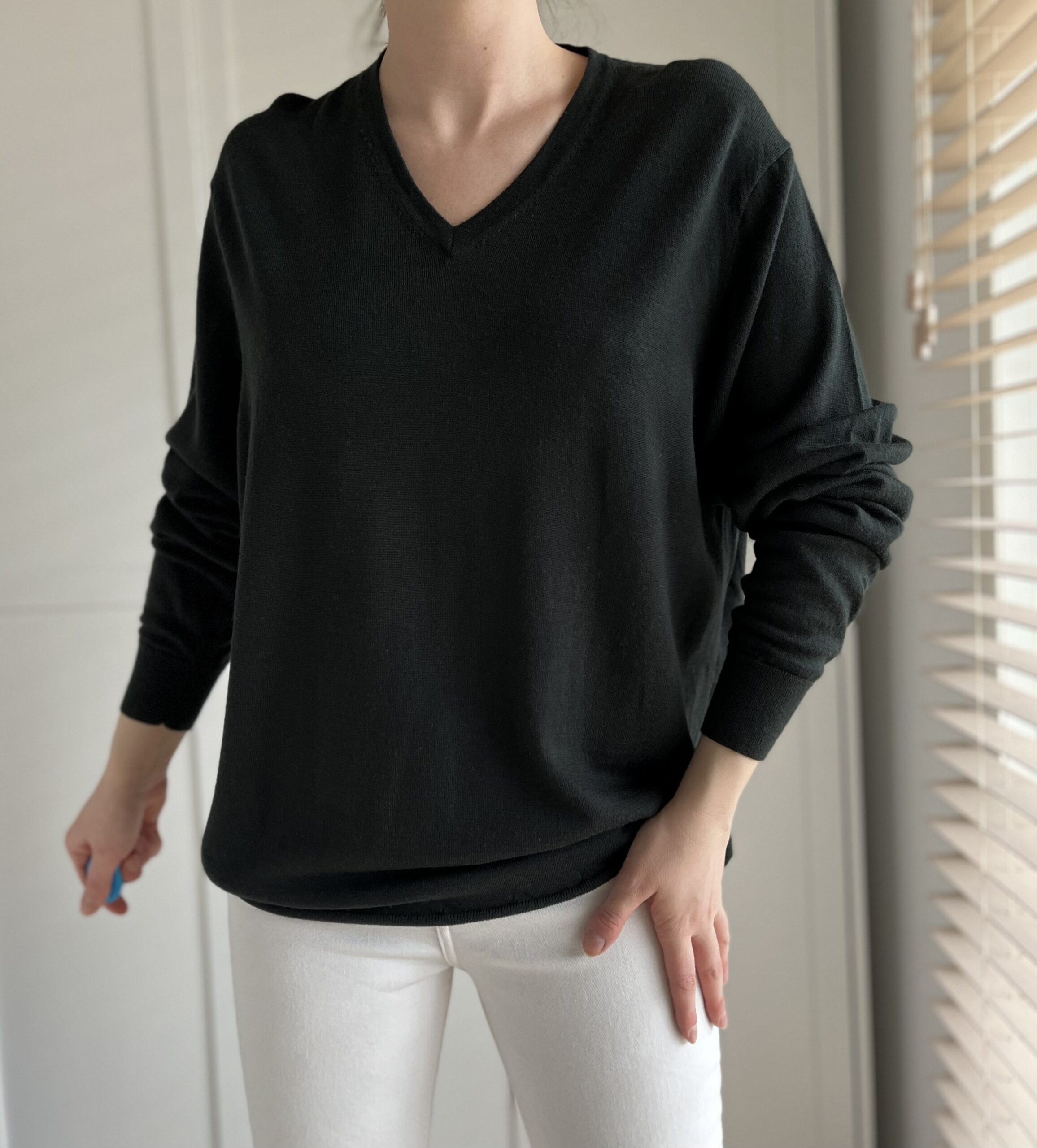 Czarny wiązany sweterek 100% kaszmir