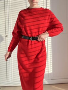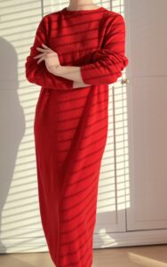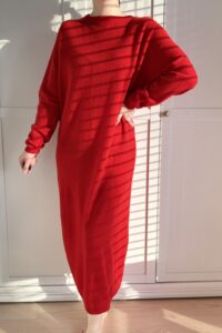 Czerwona sweterkowa sukienka maxi 100% wełna