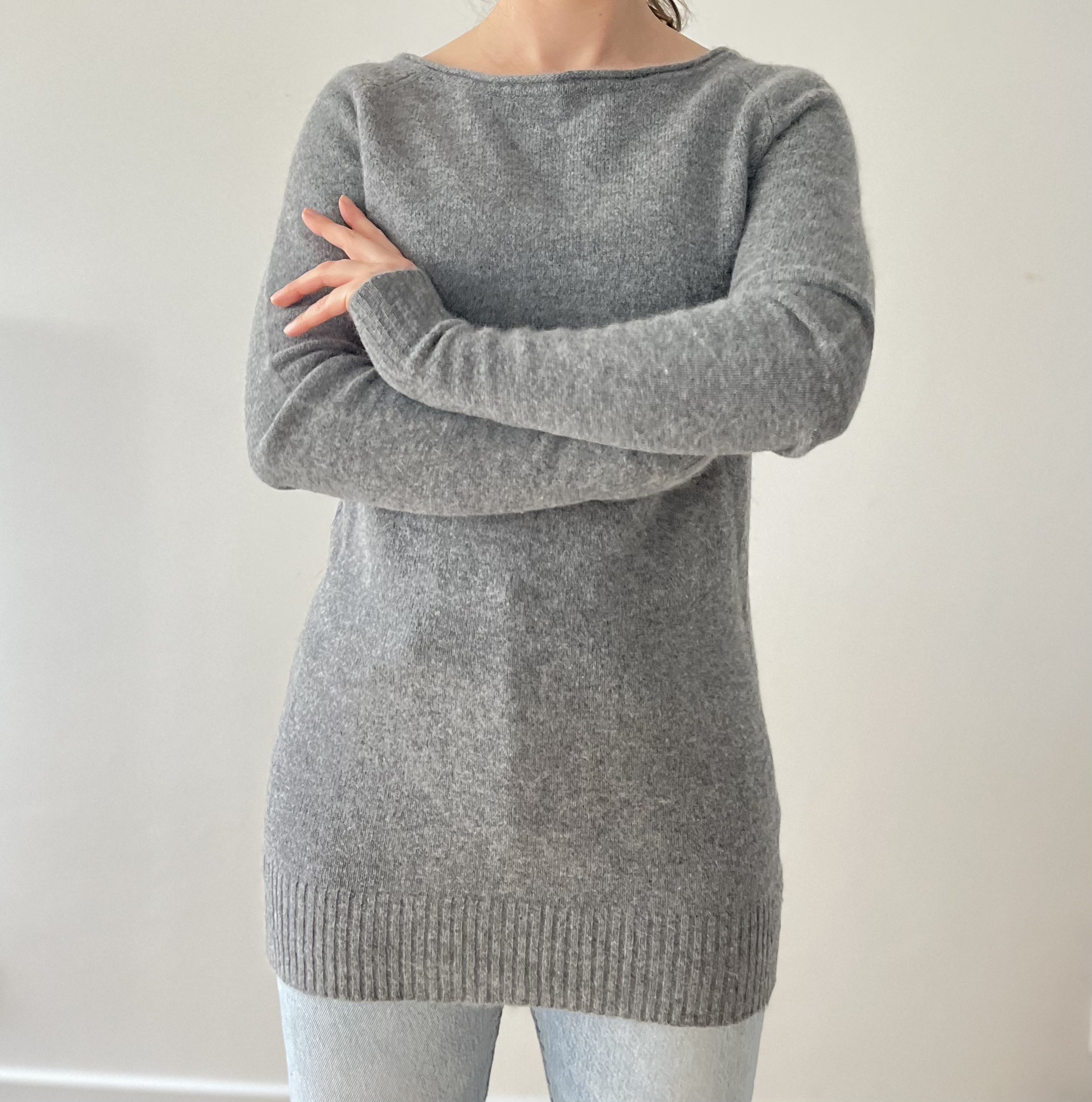 Długi szary sweterek ( 70% welna, 20% angora, 10% poliamid)