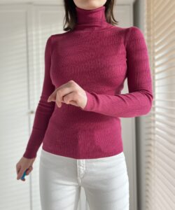 Golf w prążki ciemny róż 100% wełna XS/S