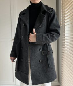 Grafitowy plaszcz w typu bosmanka 80% welna 20% poliamid
