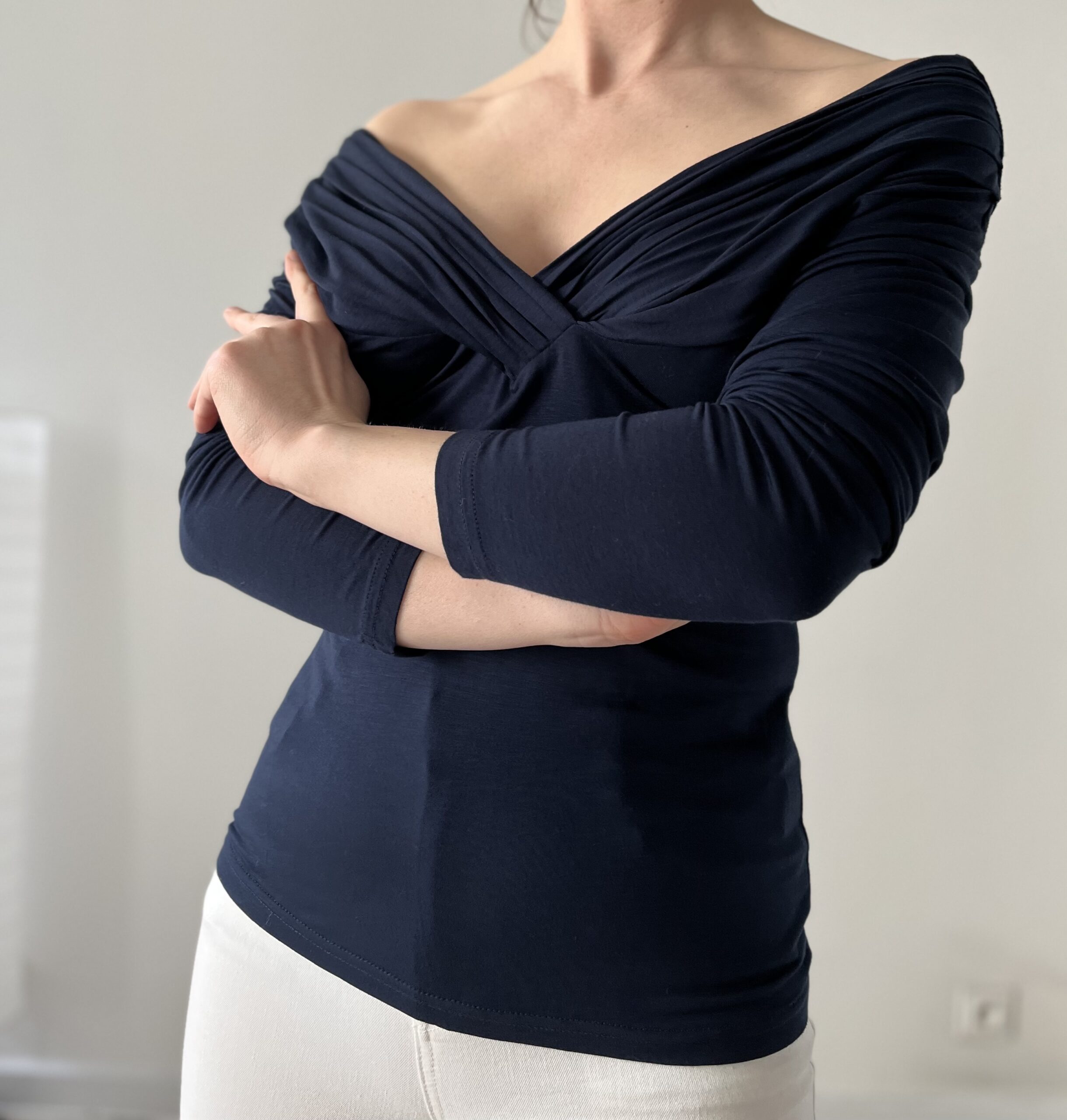 Granatowa bluzka 95% wiskoza 5% elastan.