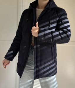 Granatowa minimalistyczna kurtka z kapturem puch i pierze