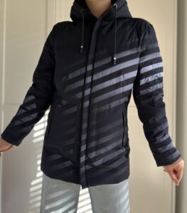 Granatowa minimalistyczna kurtka z kapturem puch i pierze