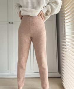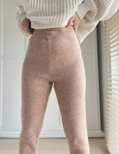 Grube welniane prazkowane leginsy z super wysokim stanem