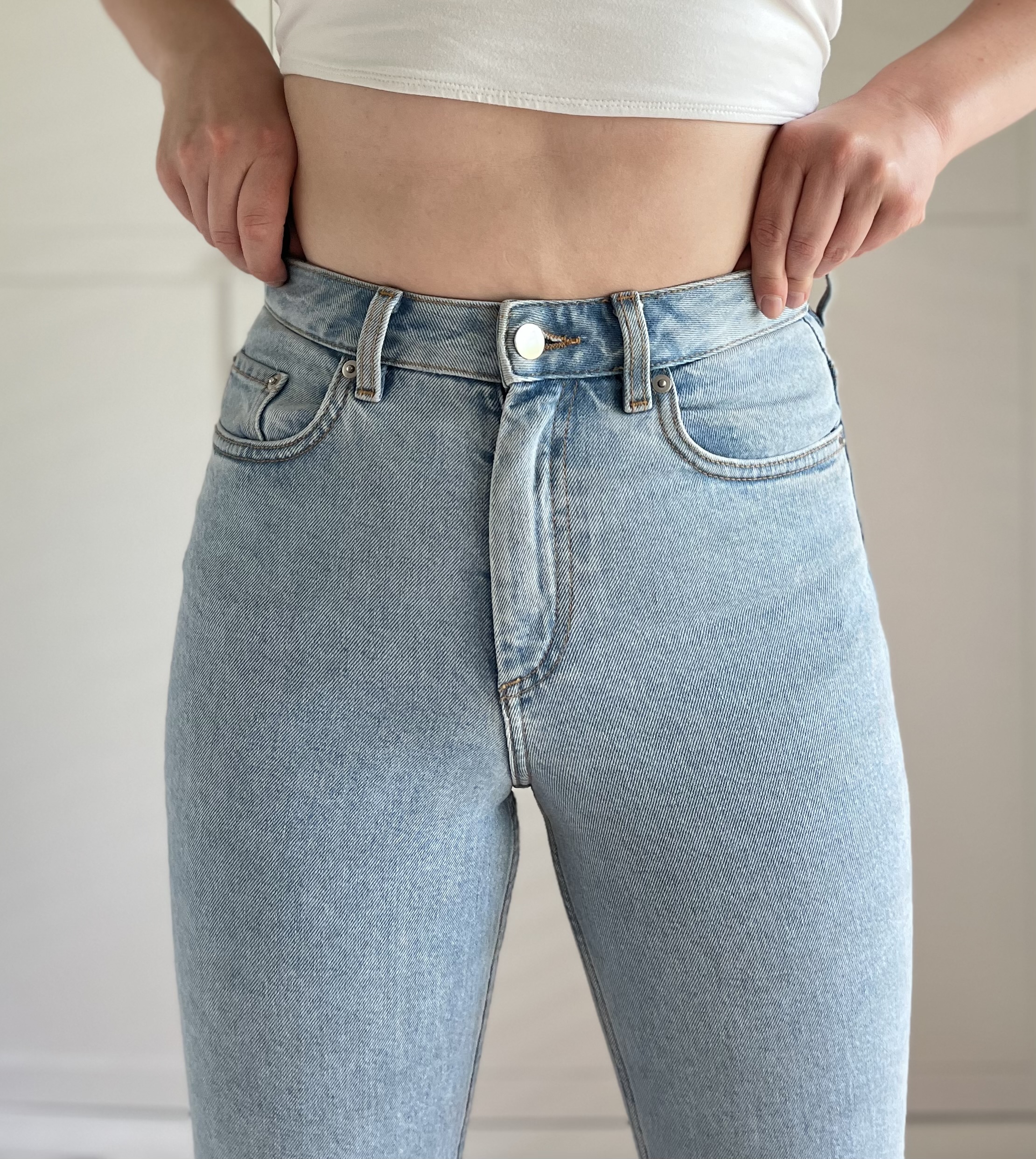 spodnie ze średnim stanem i rozcięciem na końcu nogawek