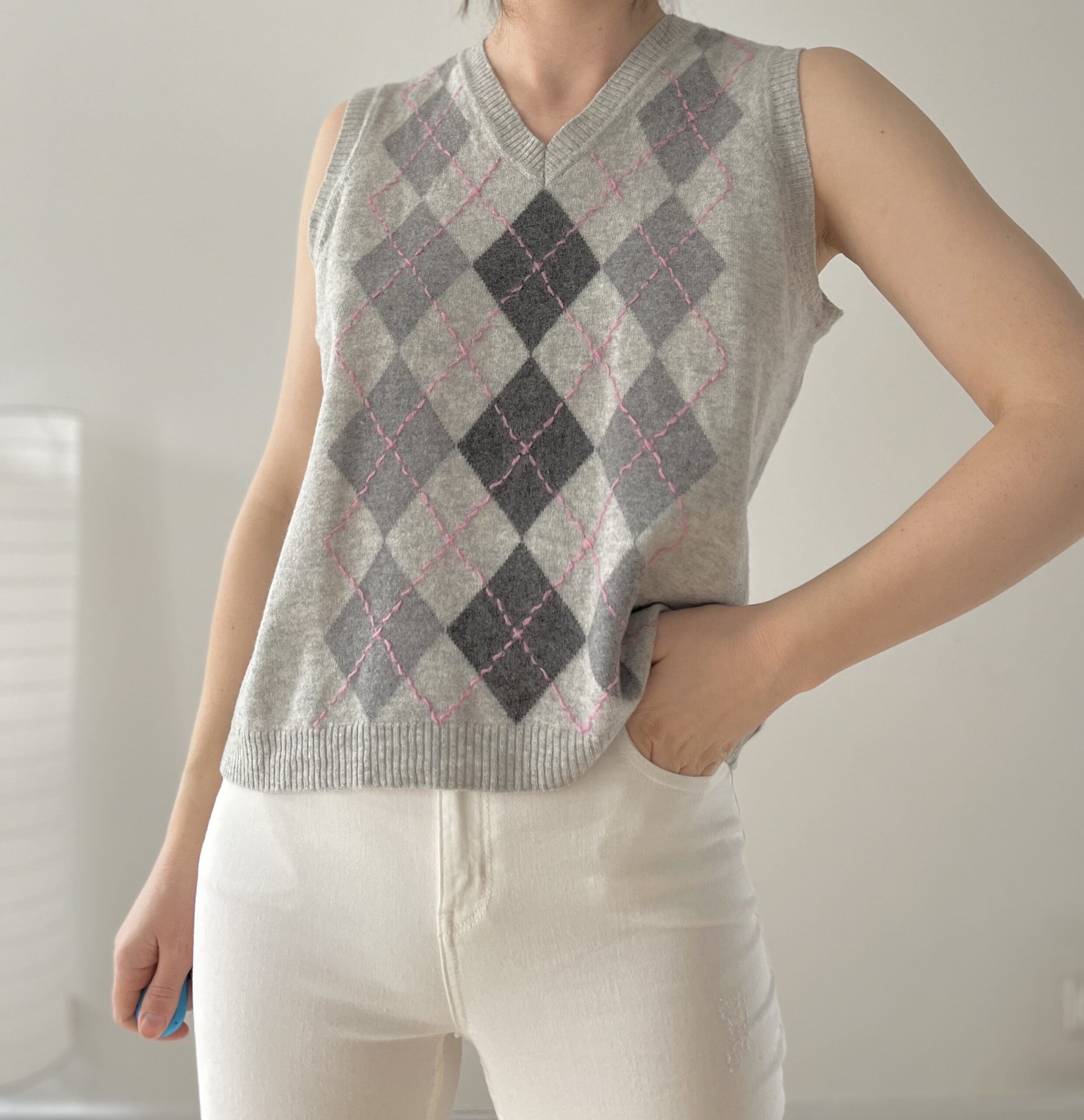 Kamizelka w romby 75% welna 15% jedwab 10% kaszmir.