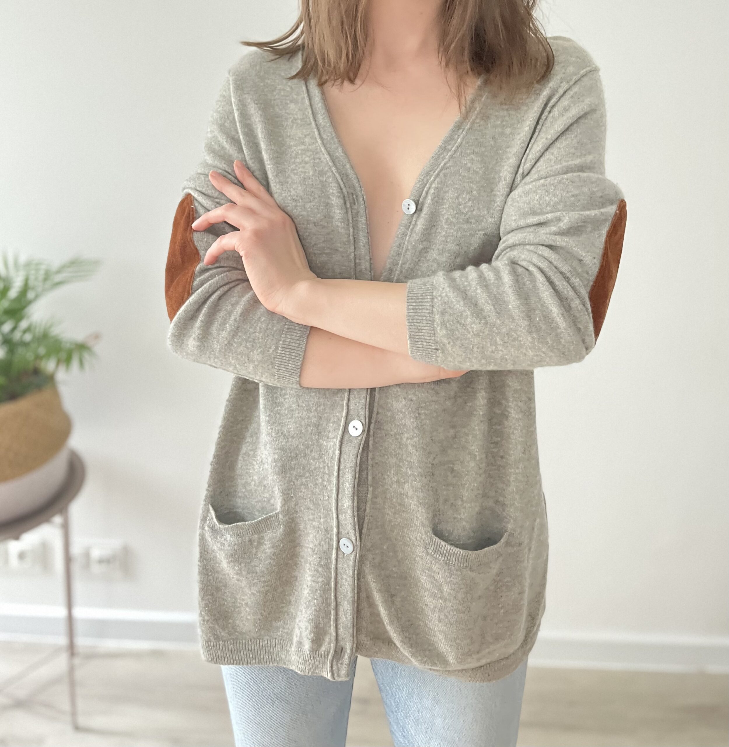 Kardigan z łatami na ł