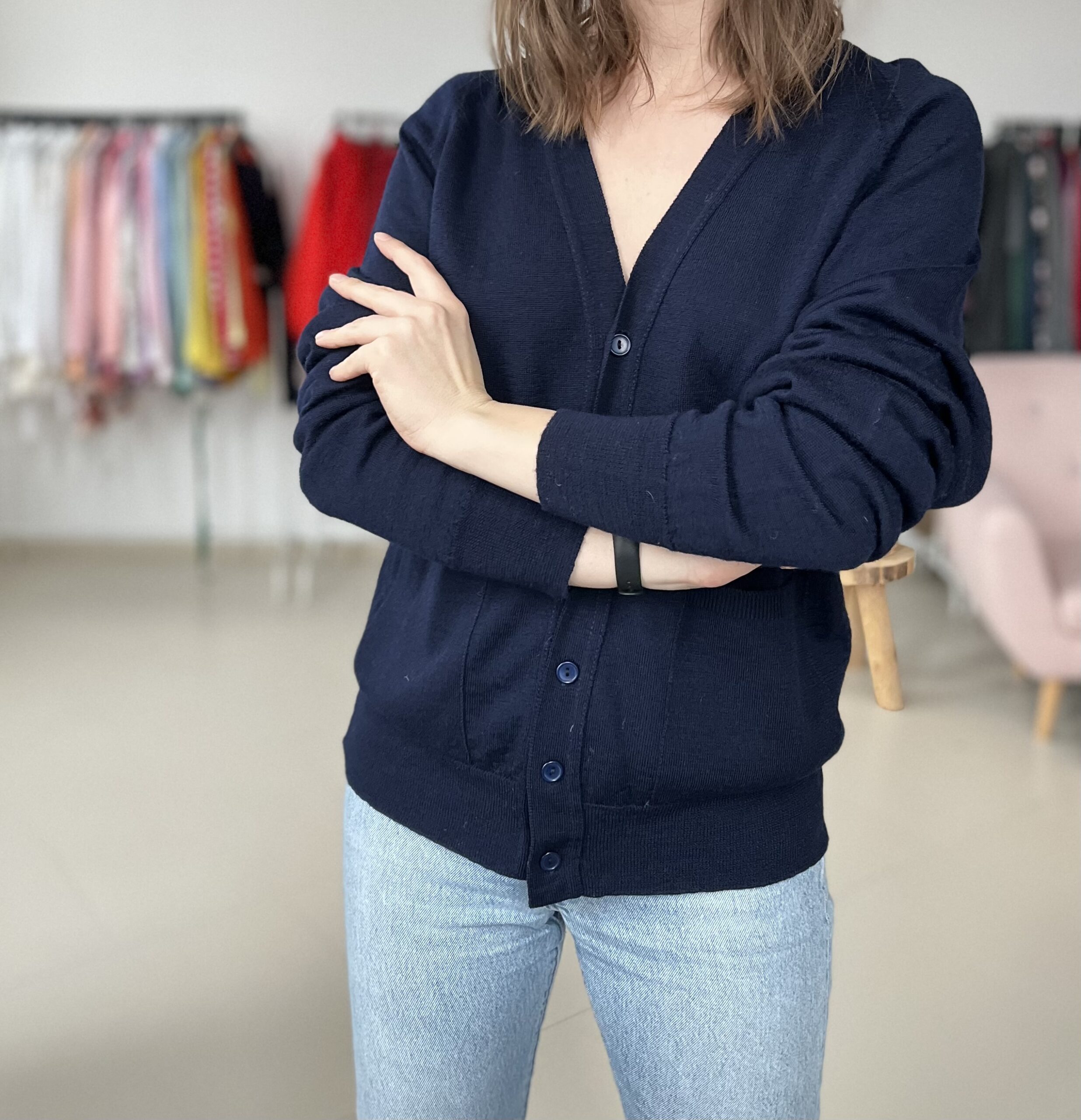 Granatowy kardigan 100% welna.