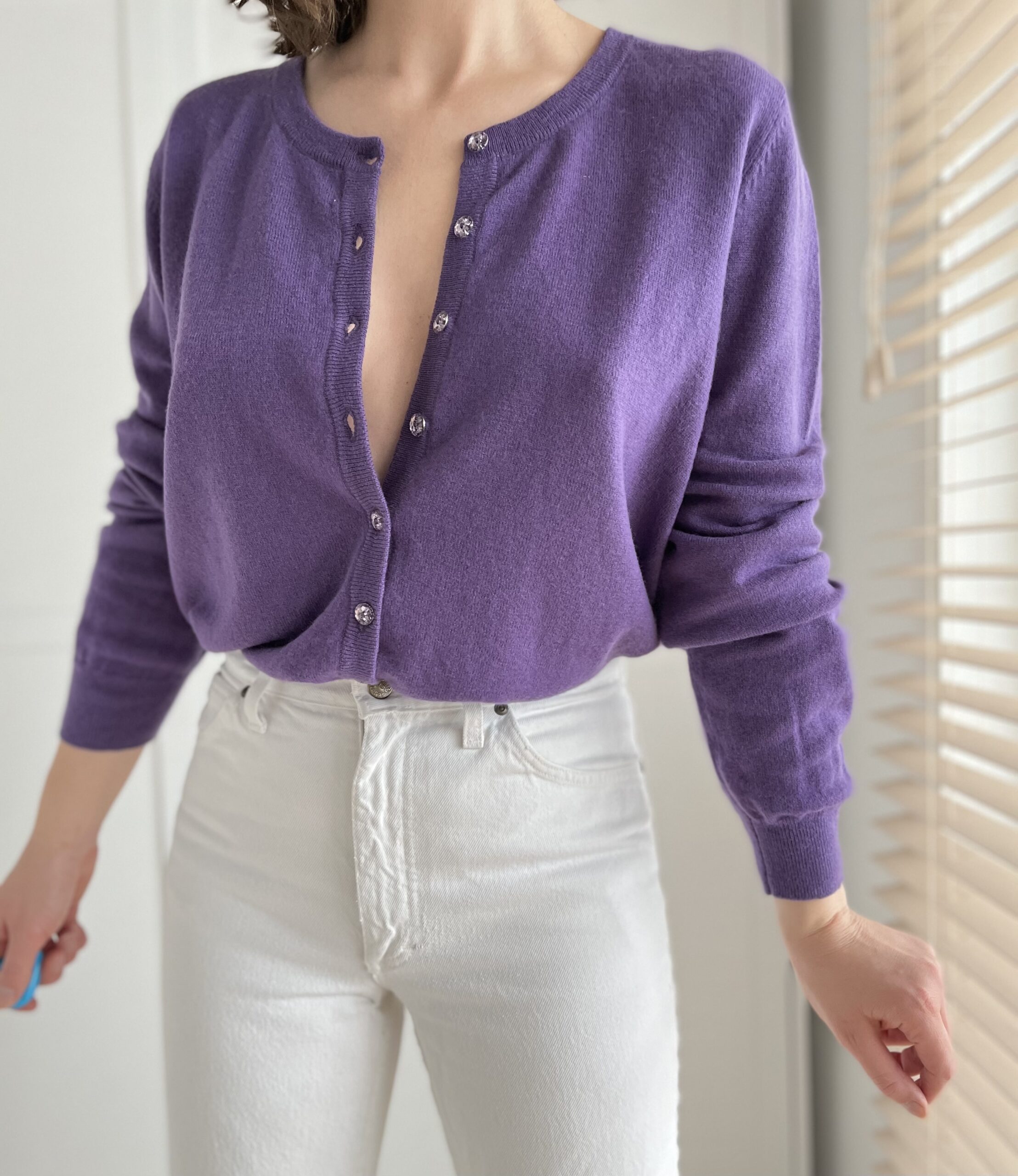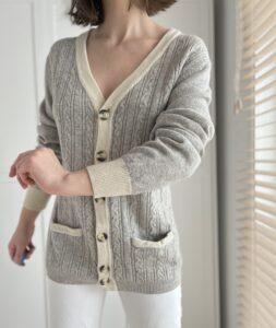 Gruby kardigan 100% wełna owcza, certyfikat Woolmark