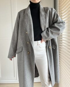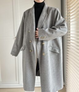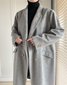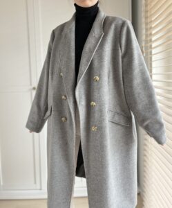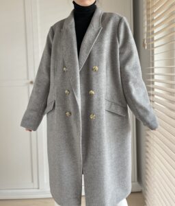 Klasyczny szary plaszcz welna i kaszmir, idealny na wiosne