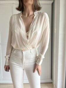 Kremowa kopertowa bluzka 100% jedwab