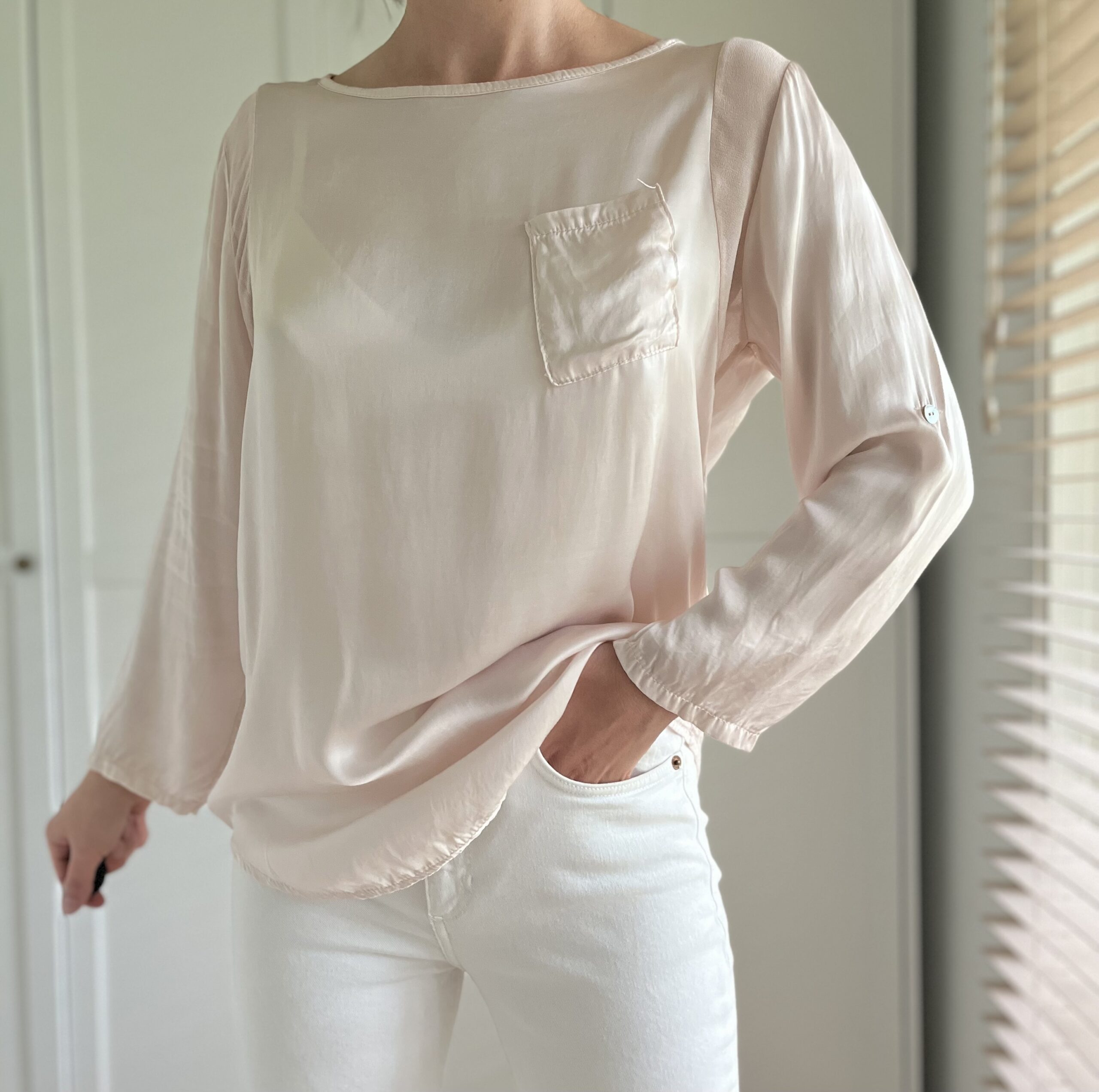 Łososiowa koszula skandynawskiej marki Arket 67% wiskoza 33% len