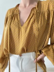 Koszula z baloniastymi rękawami, piękny wzór, 100% modal, cienka