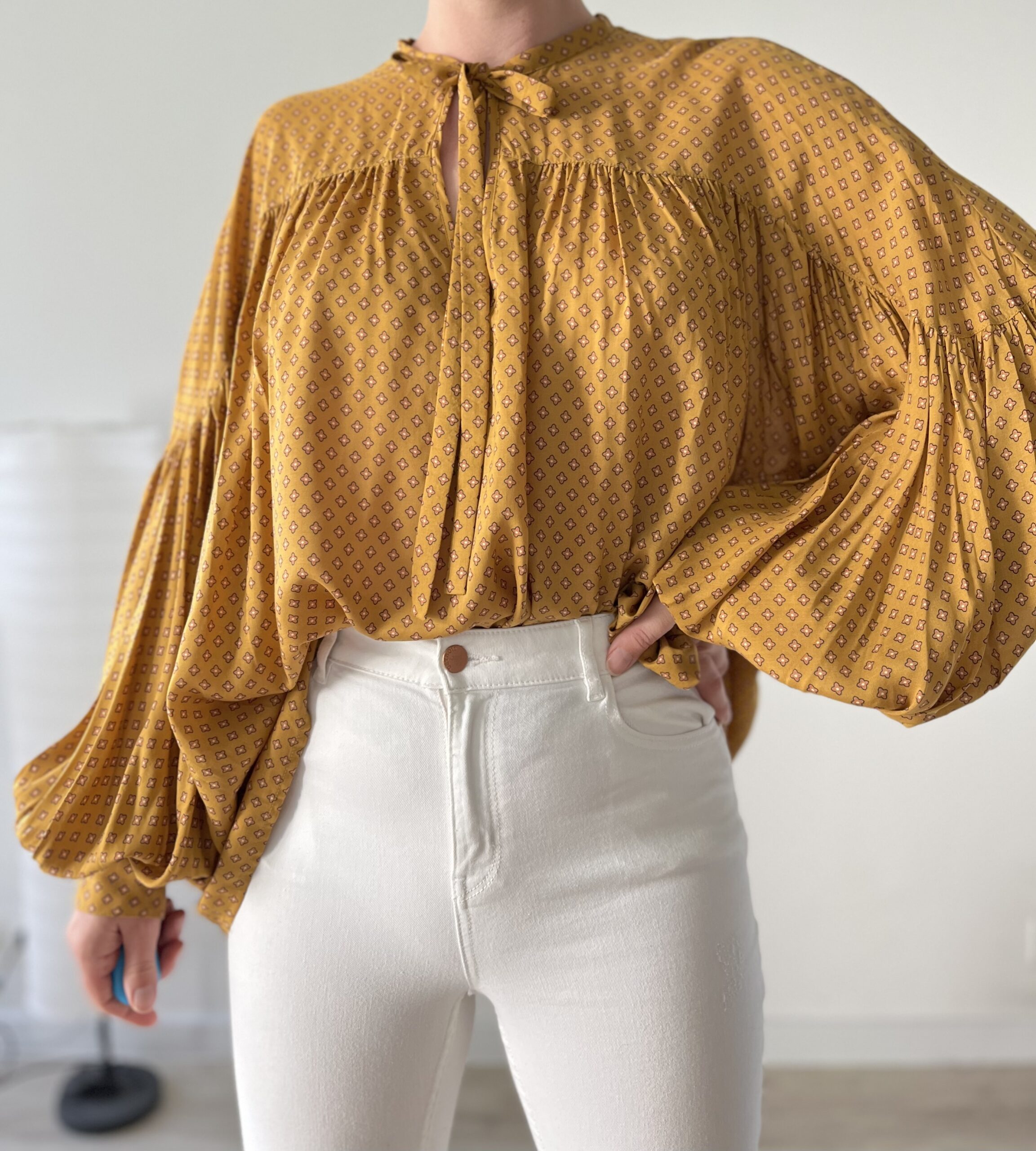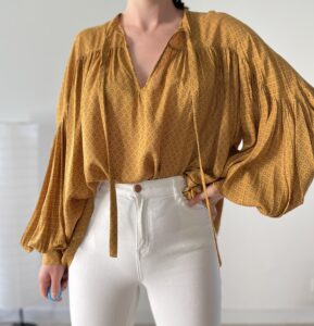 Koszula z baloniastymi rękawami, piękny wzór, 100% modal, cienka