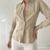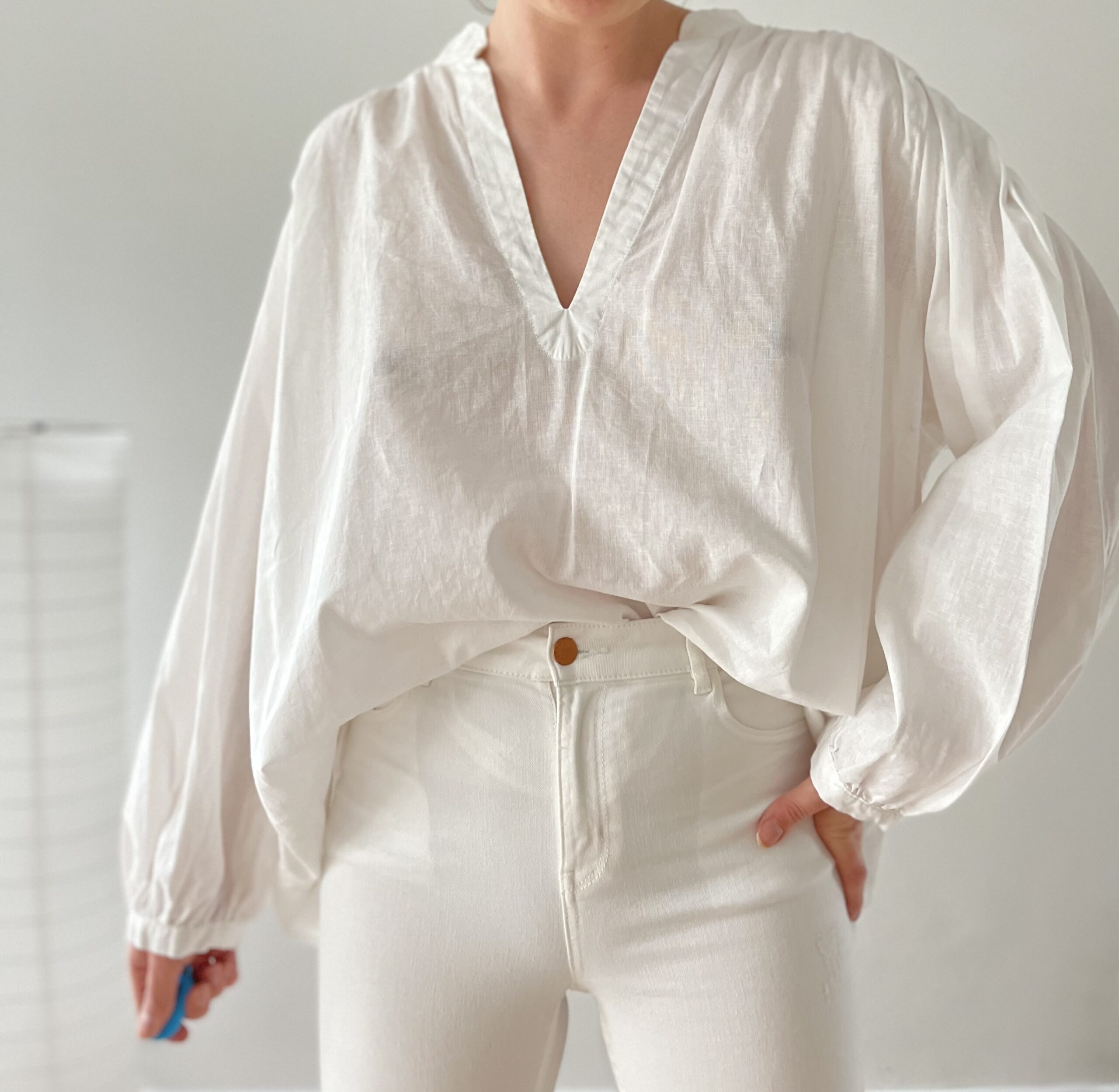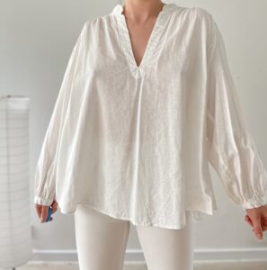 Koszula z bufiastymi rękawami 53% len 47% bawełna
