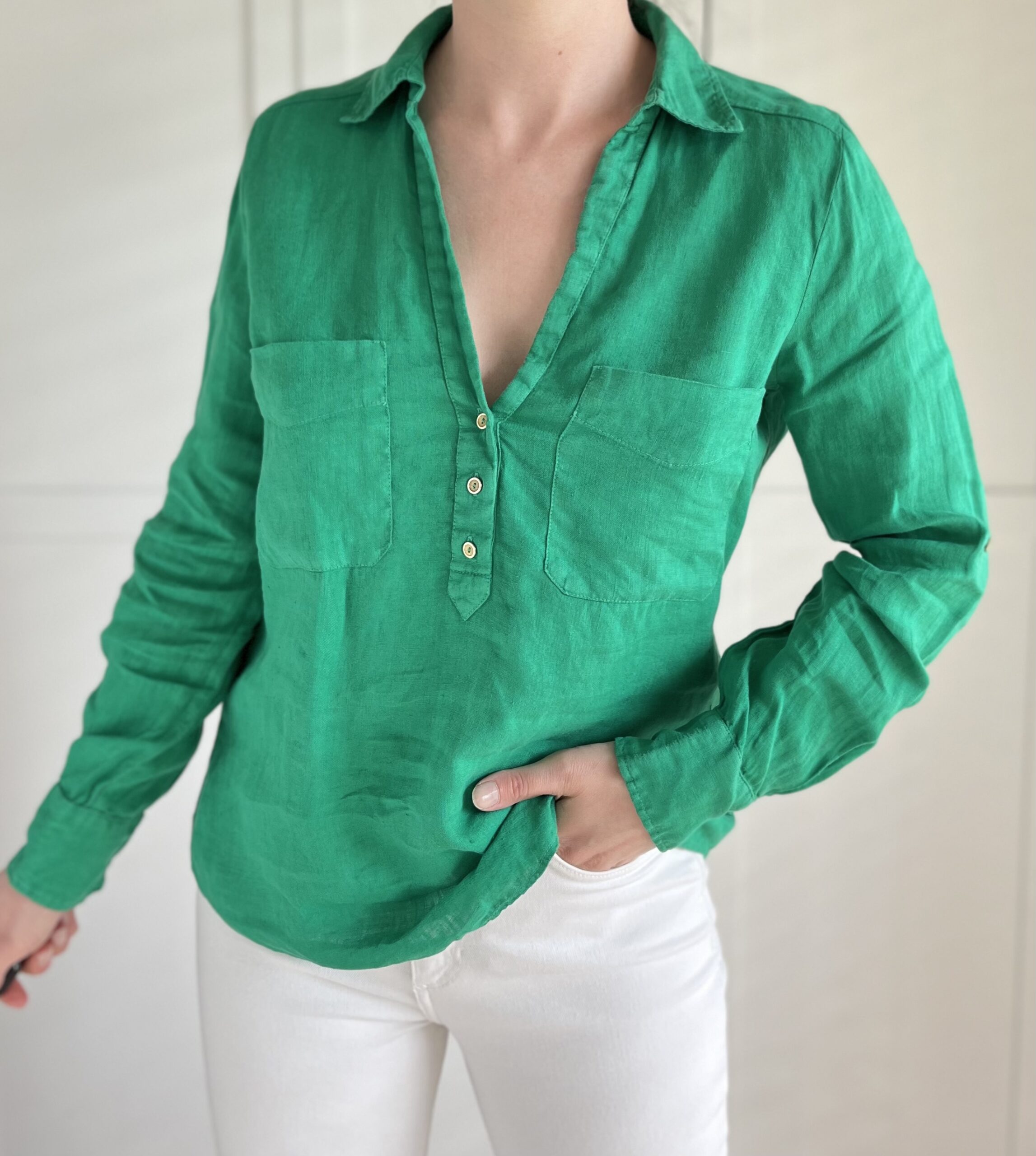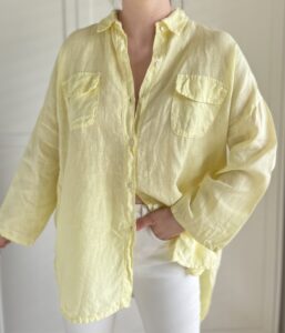 Cytrynowa koszula z dłuższym tyłem 100% len