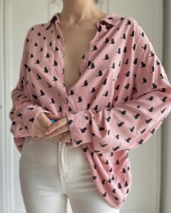 Różowa koszula w koty 100% wiskoza