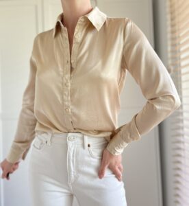 Klasyczna koszula w szampańskim kolorze 100% jedwab