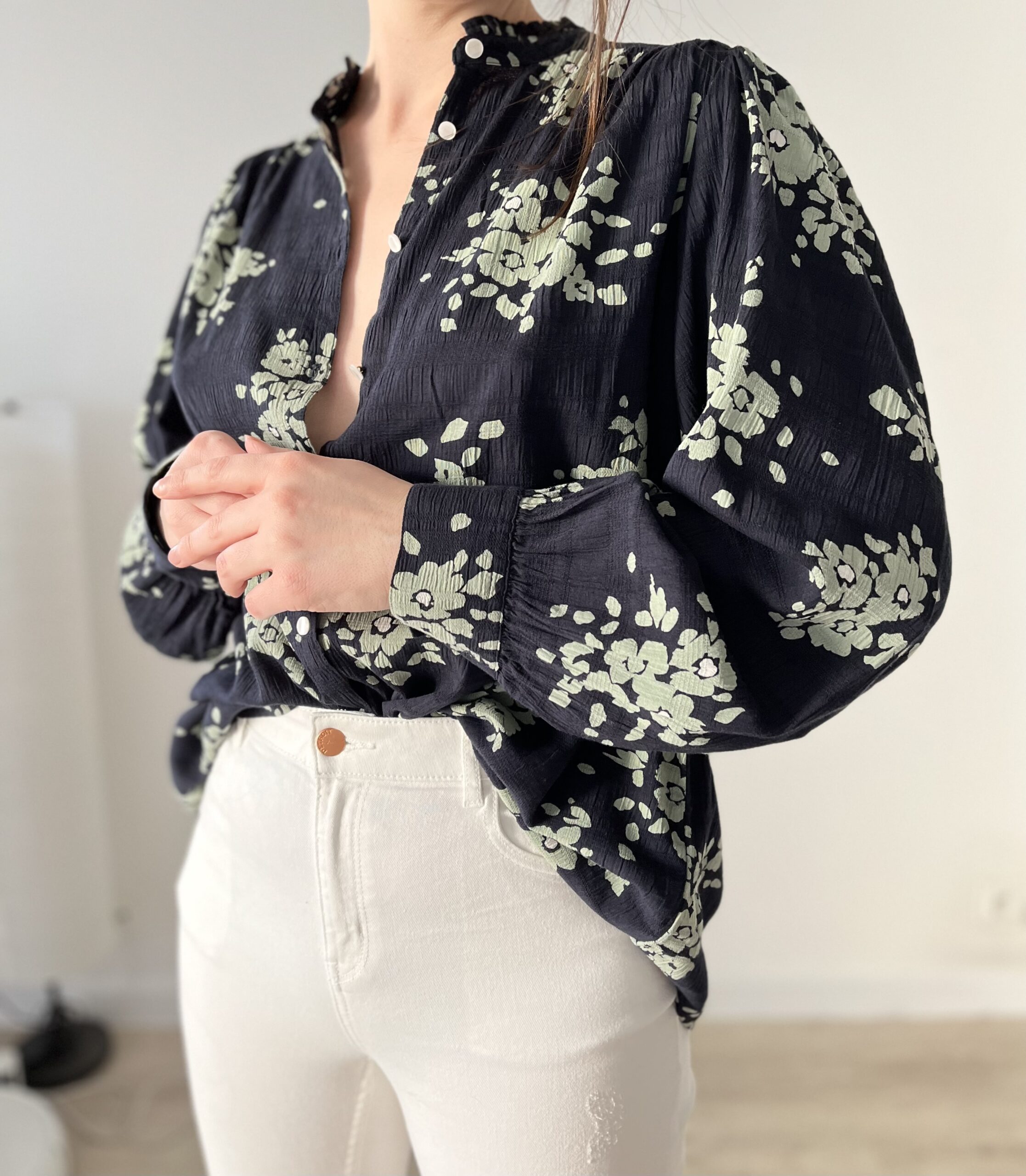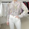 Koszula w kwiaty z bufiastymi rękawami wiskoza/bawełna