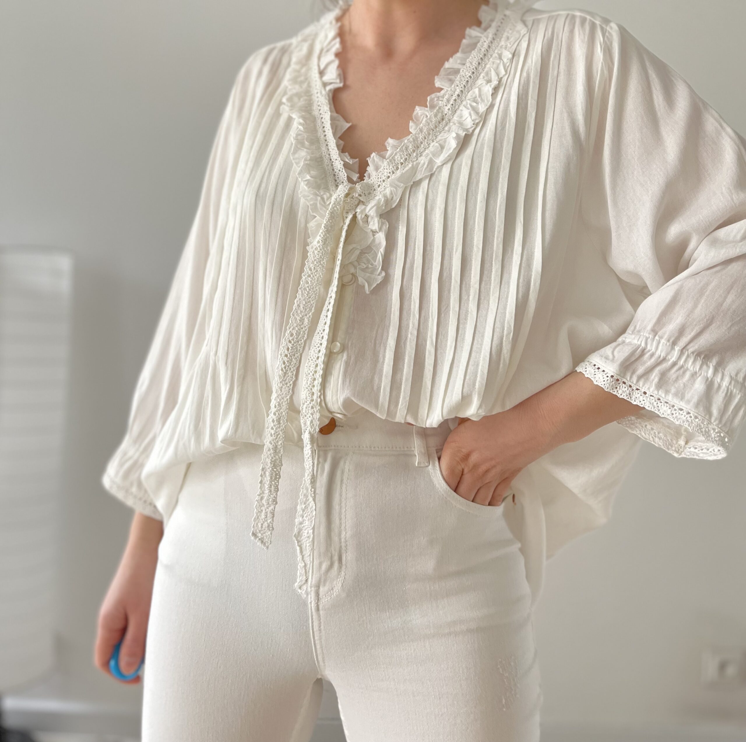 Bluzka kremowa, brak metki ze skladem, obstawiam bawelne+jedwab.