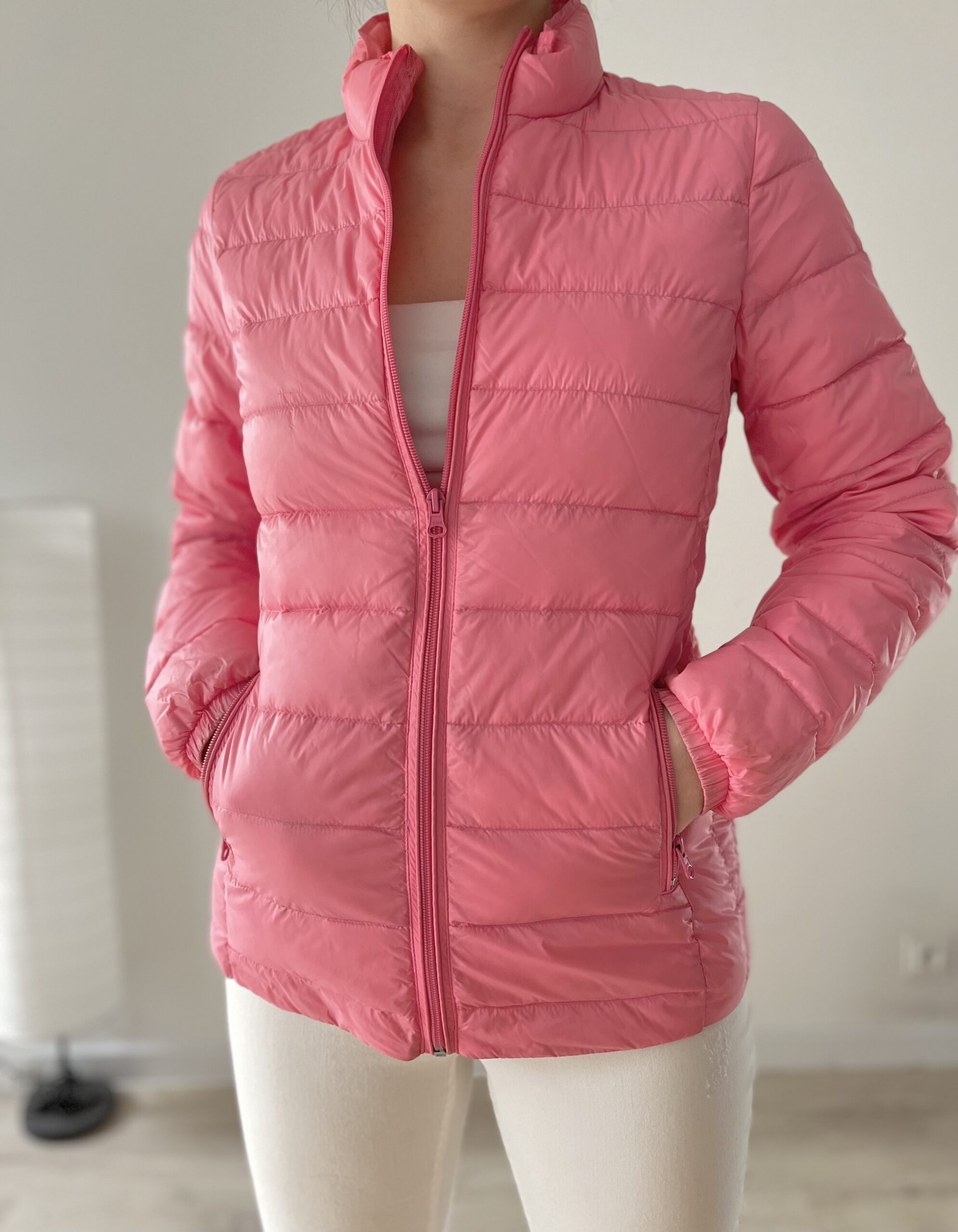 Różowa cienka kurtka 90% puch 10% pierze