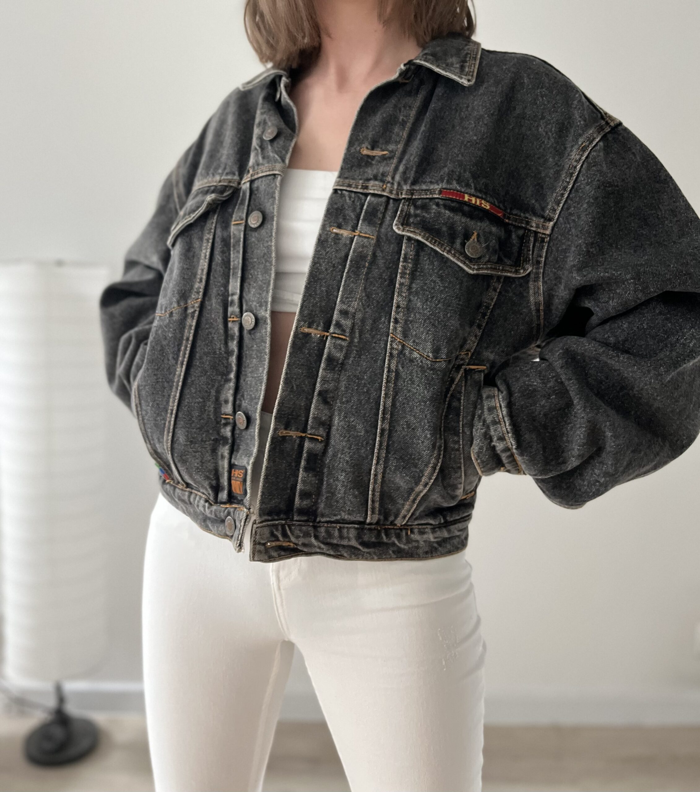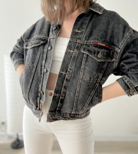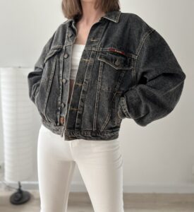 Szara kurtka real vintage. Ciezki gruby jeans.