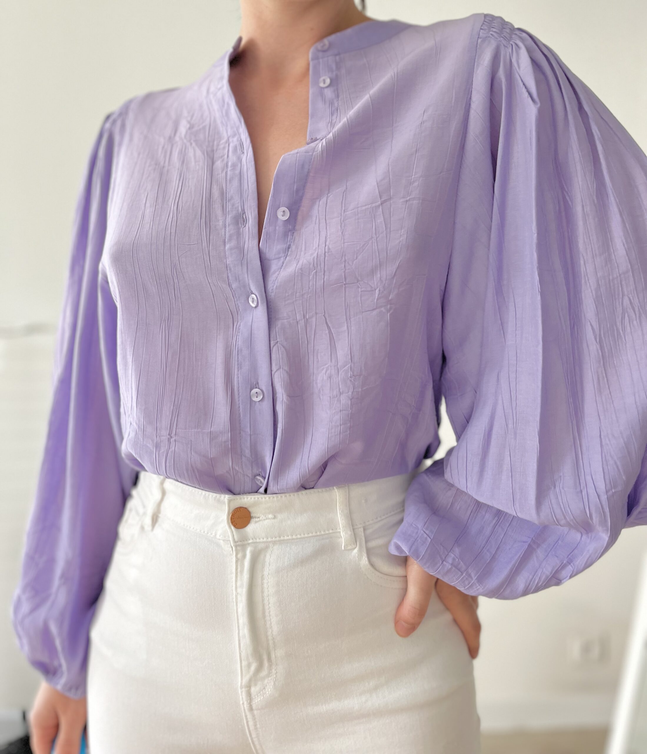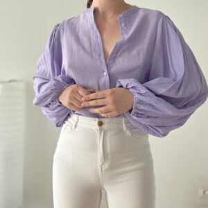 Lawendowa koszula z bufiastymi rękawami 83% wiskoza