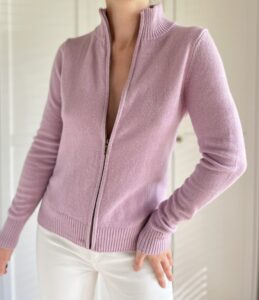 Liliowy sweterek na suwak 100% wełna