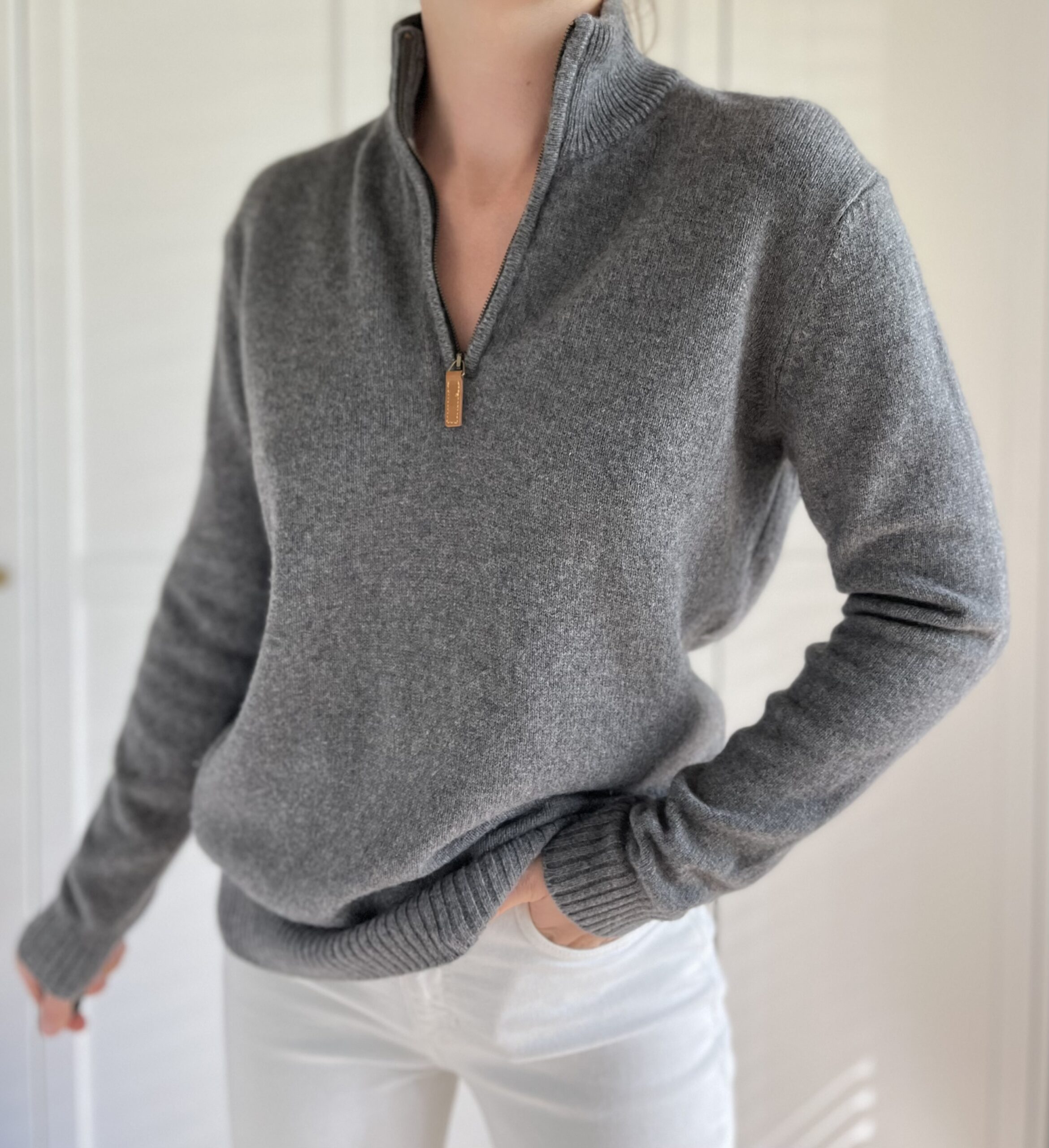 Liliowy sweter na suwak 100% wełna S/M