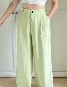 Limonkowe szerokie spodnie Zara 88% modal 12% poliester