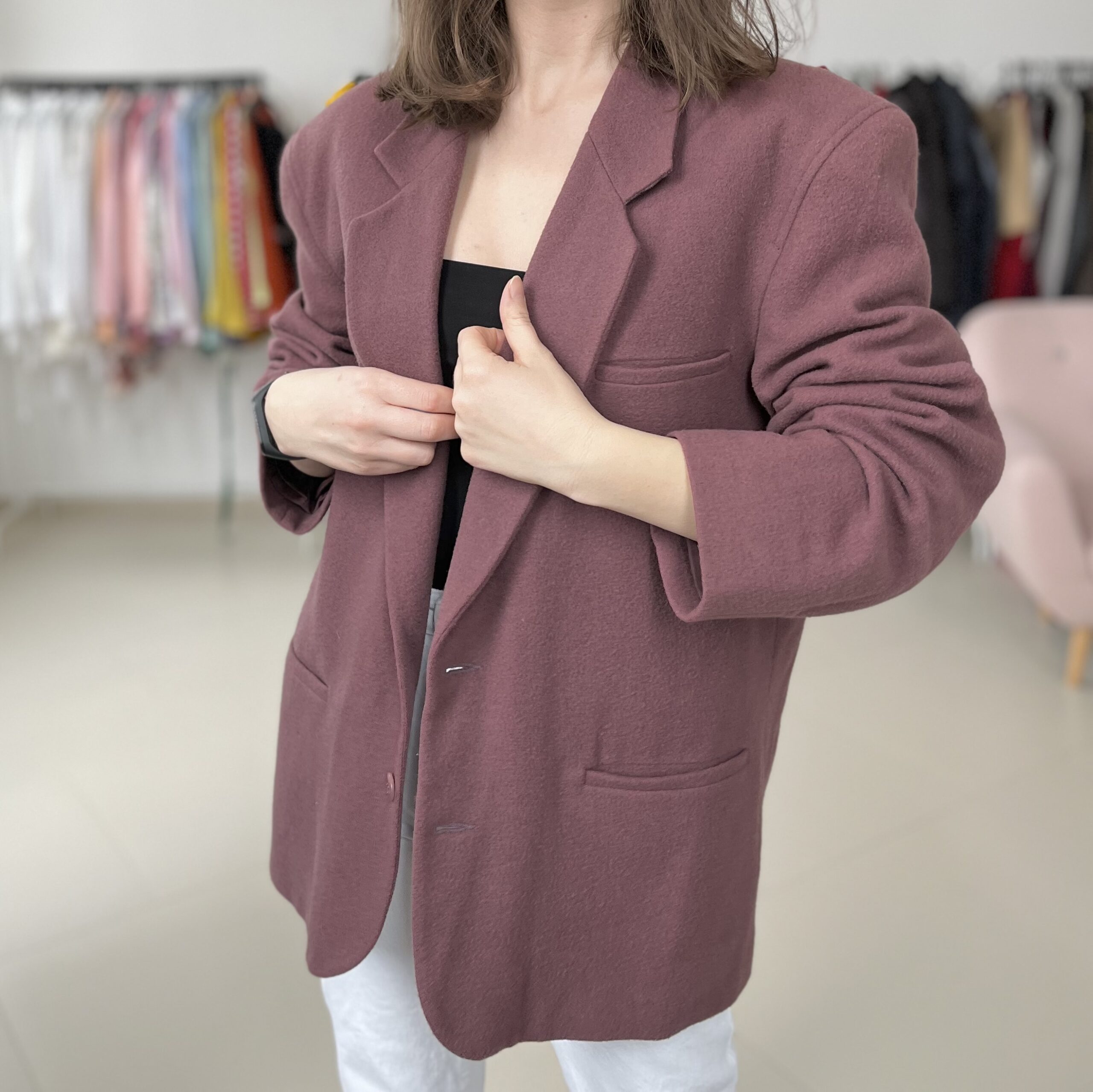 Wrzosowa marynarka 80% welna, podszewka polister.