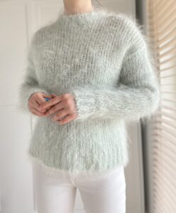 Miętowy puchaty sweterek 80% moher